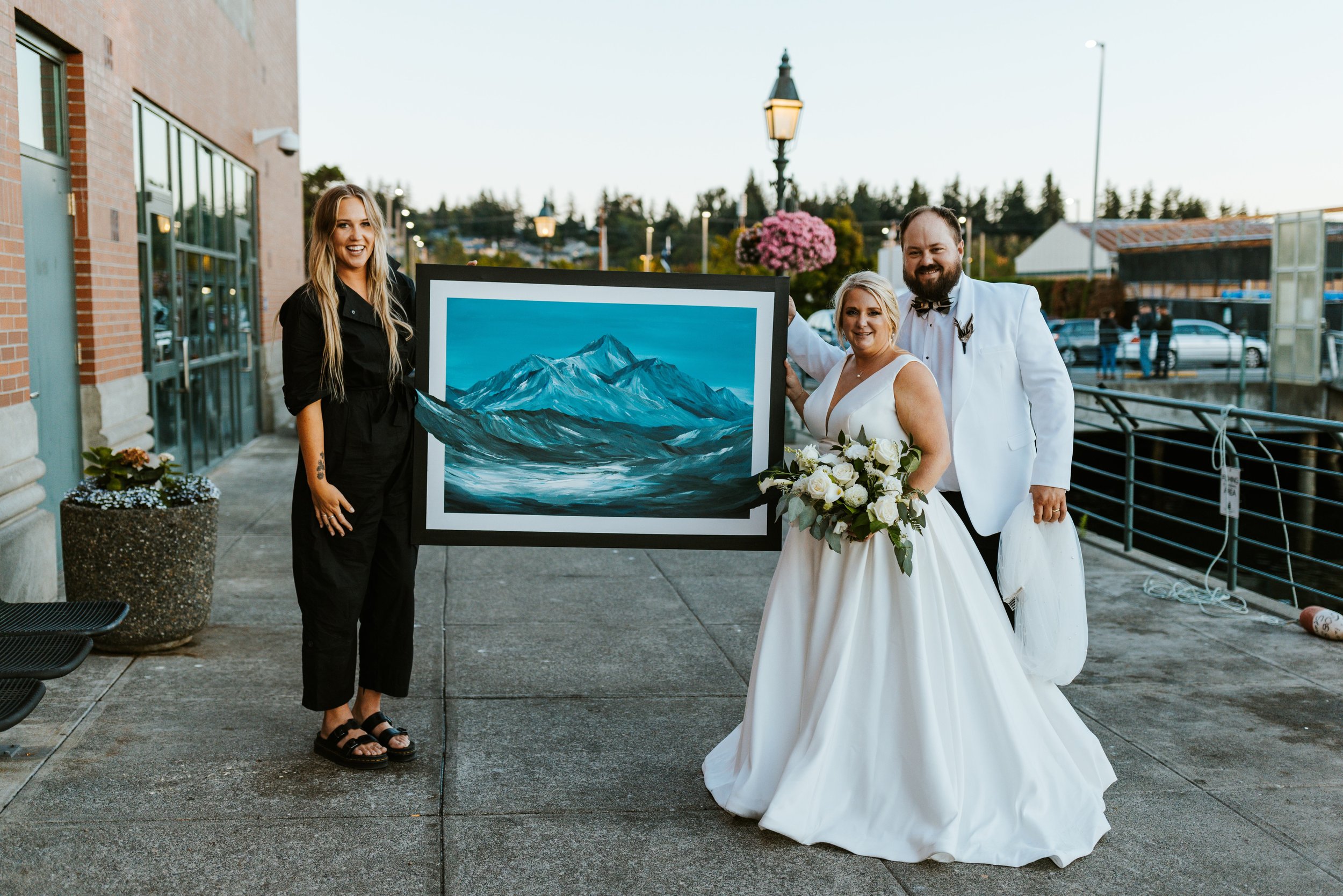 When hired, I will perform a live painting session on-site during your celebration! Whether it's a corporate event, wedding, family reunion, or graduation the painting will come to life as the party unfolds. You and your guests will create memories as I create PNW-inspired abstract or impressionistic art before your eyes that you get to keep to remember the evening for years to come!