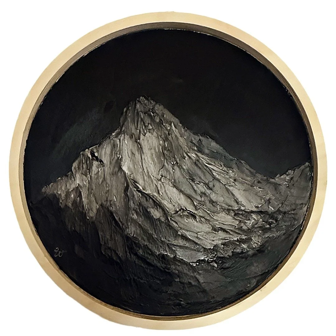 A framed original textured interpretation of Mt Shuksan. By PNW artist Erin Oostra.