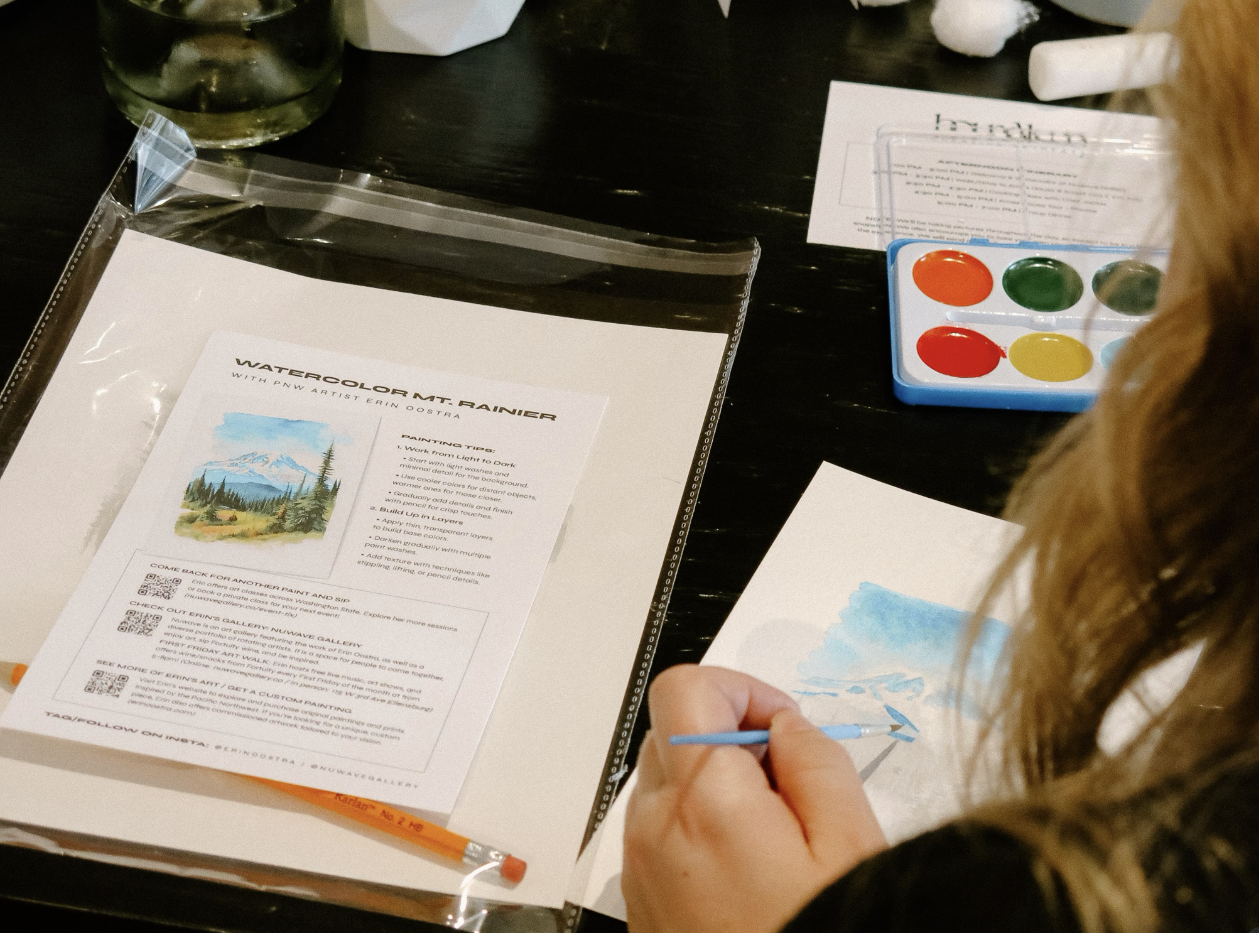 Looking for a fresh way to gather your friends, family, or coworkers? Erin Oostra’s traveling “paint and sip” watercolor classes bring art, relaxation, and connection right to your space. Whether you are in Seattle, Suncadia, Tumble Creek, or anywhere across the Pacific Northwest, Erin makes it simple to host a creative experience that everyone will love.
